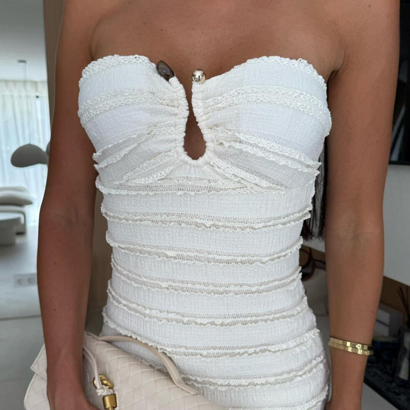 Ruched bodycon jurk strapless👗