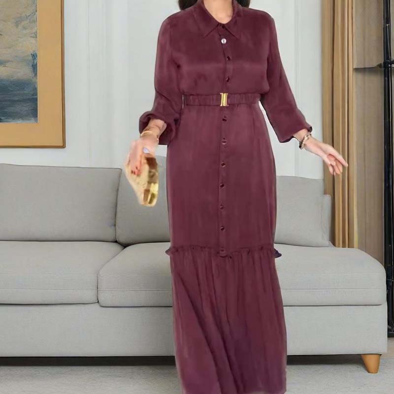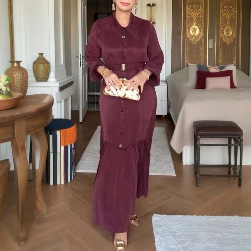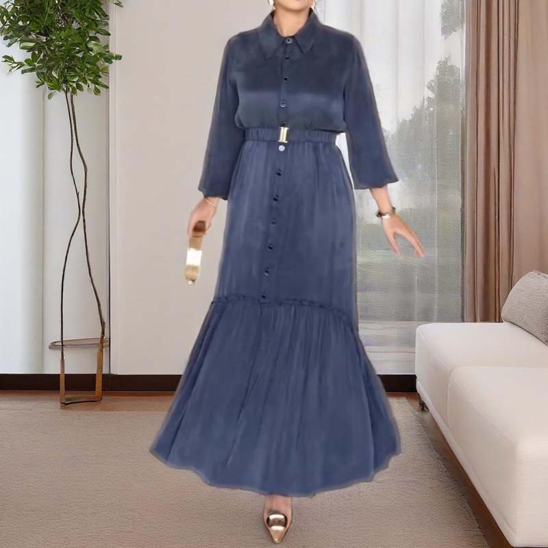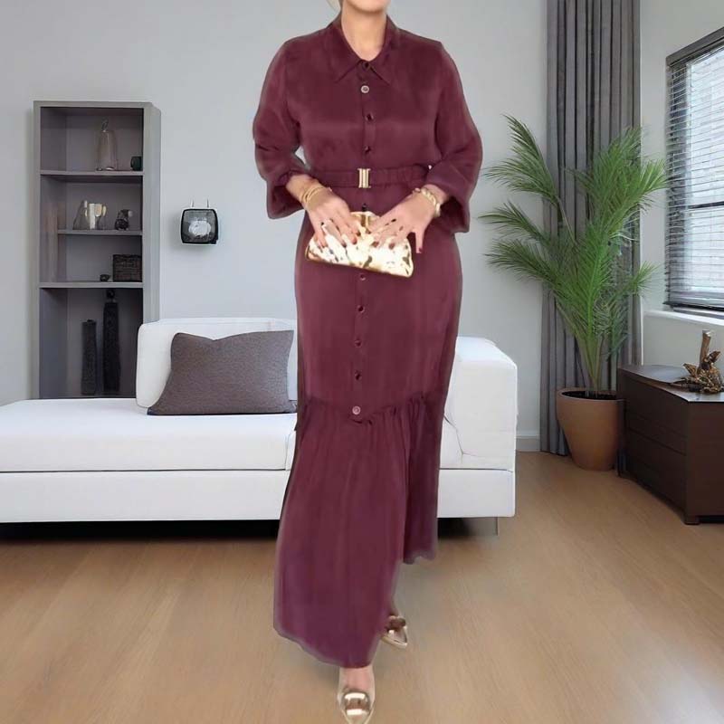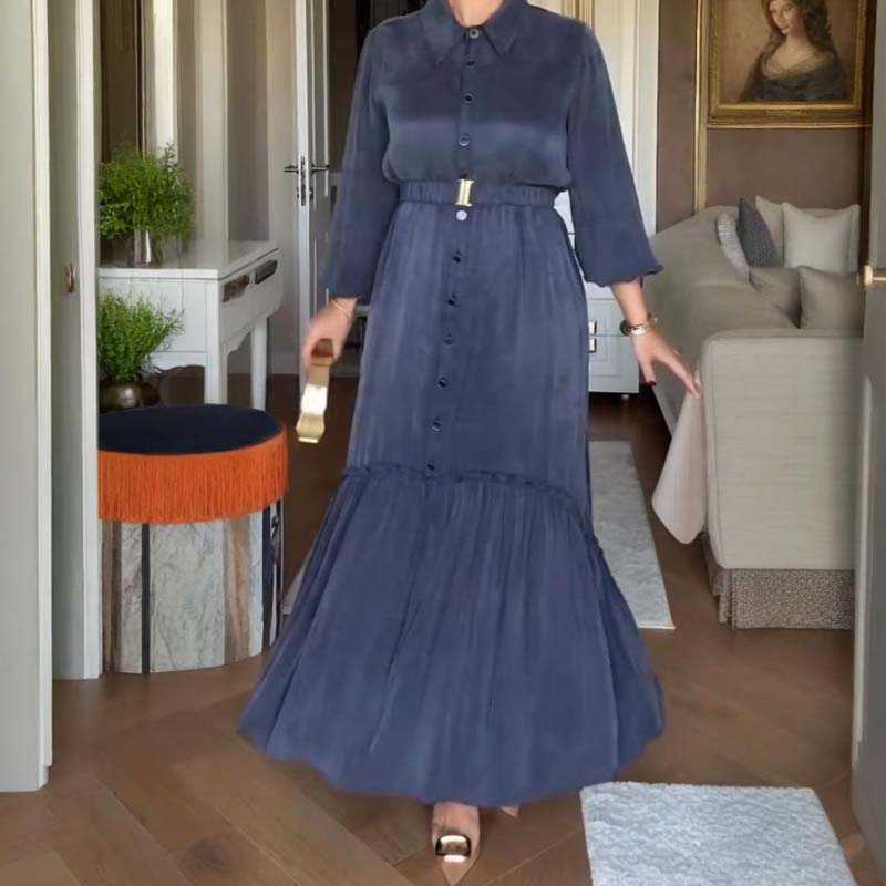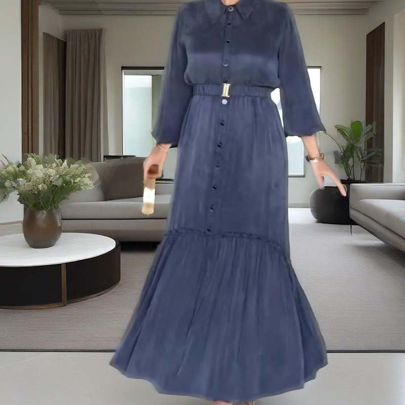 ELEGANT REVERSONTWERP – De jurk heeft een verfijnde revershalslijn die een casual silhouet een gepolijste touch geeft. Dit detail tilt de algehele look naar een hoger niveau, waardoor de drager naadloos kan overschakelen van een professionele setting naar een ontspannen uitje.