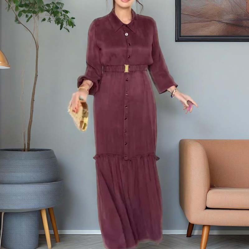TAILLE-BENADRUKKENDE RIEM – De riem accentueert niet alleen het silhouet, maar biedt ook comfort door de verstelbaarheid. Hierdoor kan de jurk worden aangepast aan persoonlijke voorkeuren, zodat elke drager zich zelfverzekerd en goed gekleed voelt zonder in te boeten aan comfort.