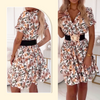 Pakket Includes: 1*Bloemenprint V-Hals Mini Jurk voor Vrouwen