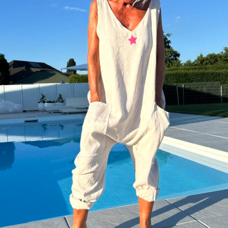 Losse mouwloze jumpsuit met een V-hals voor vrouwen in de zomer