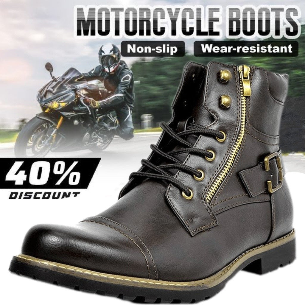 Mannen's Motorlaarzen, Antislip Vintage Leren Laarzen