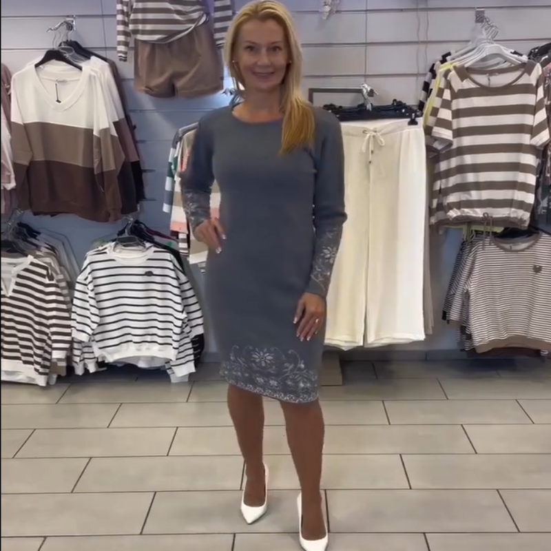 ELEGANTE VERZIERINGEN - Fijne patronen sieren zowel de zoom als de manchetten. Deze subtiele, glanzende accenten voegen een verfijnde charme toe en transformeren een eenvoudige jurk in een opvallend kledingstuk. Dankzij de zorgvuldige details straal je bij elke gelegenheid.