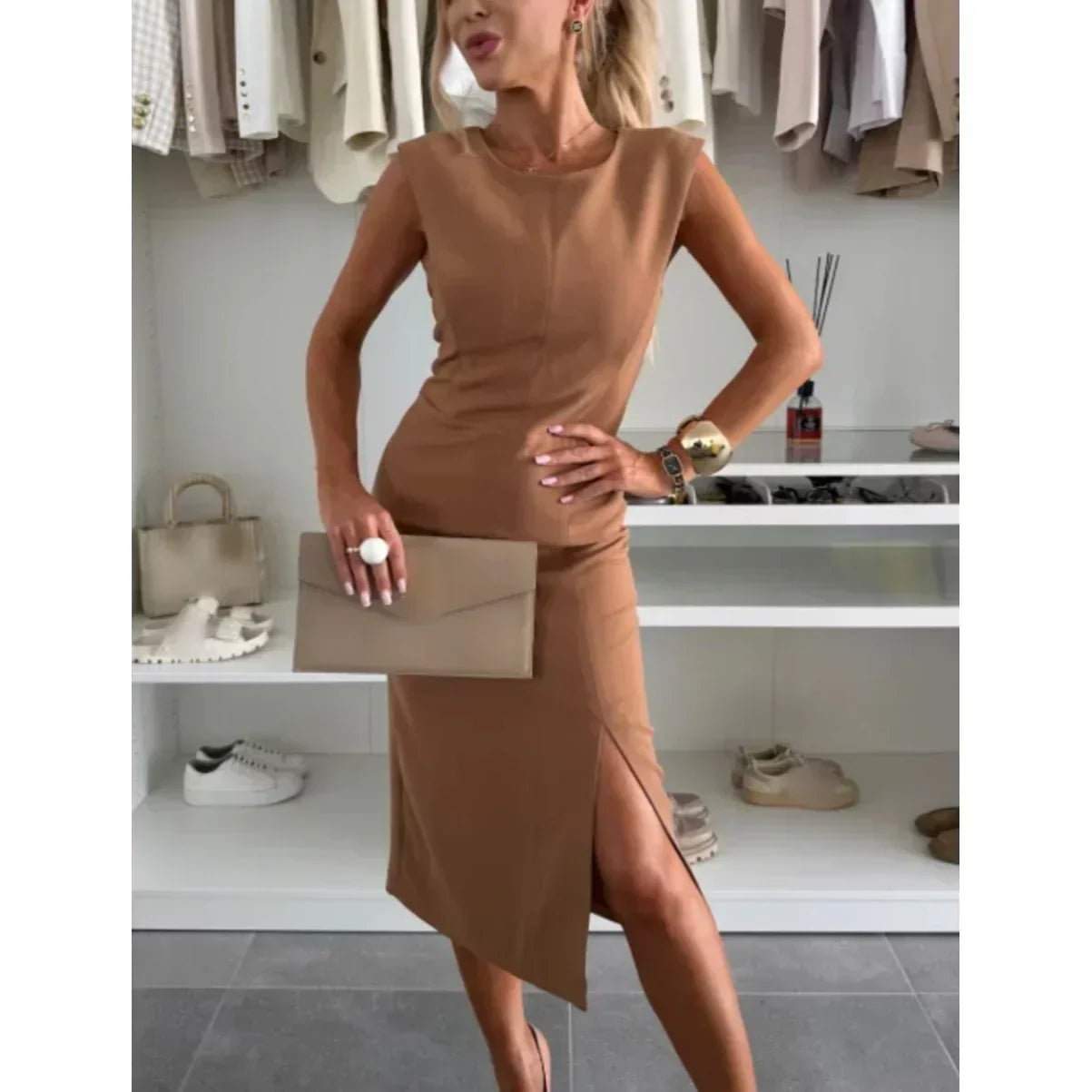 Package Include: 1* Women’s Sleeveless Bodycon Dress with Slit