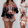 🌷Zomer Hot Sale-49% Aanbieding🩵Fashion Prints Button Up Overhemd Top & Riem Shorts Tweedelige Set