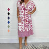 Bedrukte casual jurk met V-halslijn en franjes op de korte mouwen