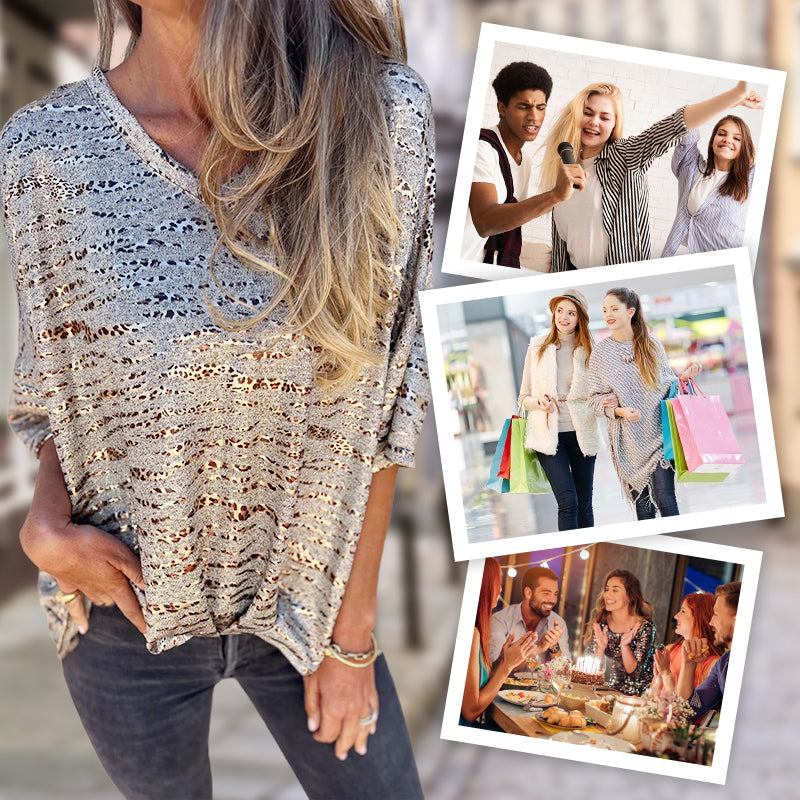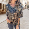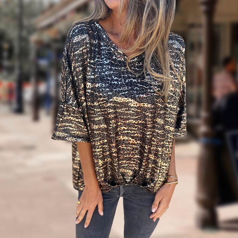Geef je garderobe een boost met onze losvallende damesblouse met V-hals, luipaardprint en halflange mouwen!