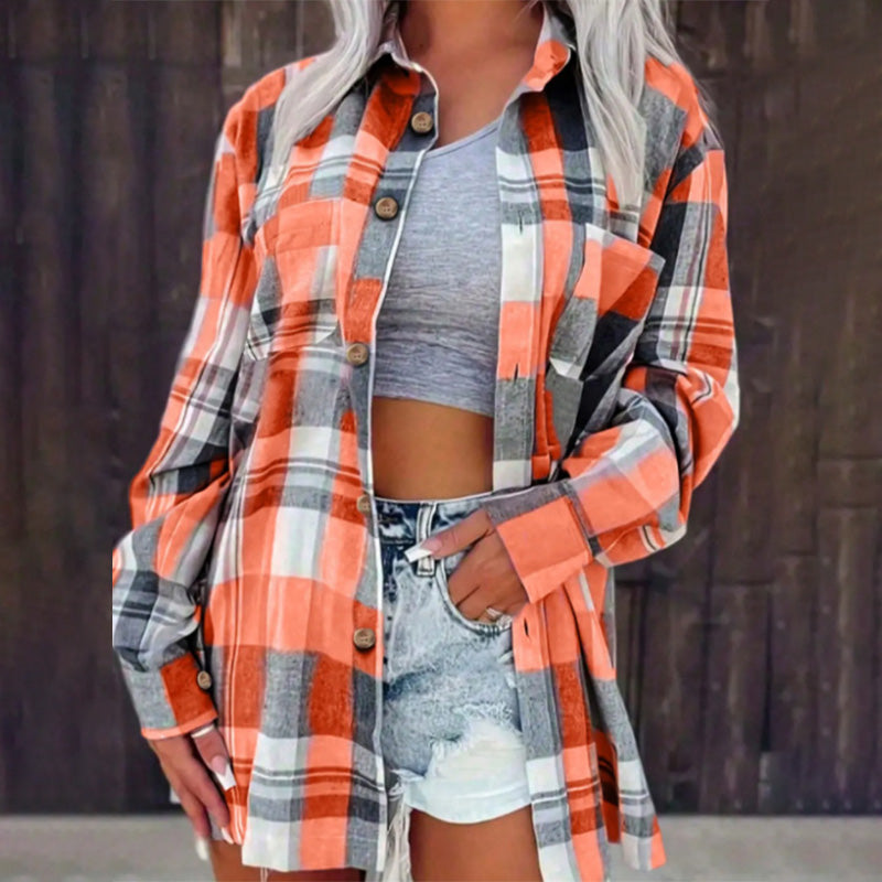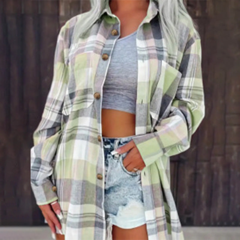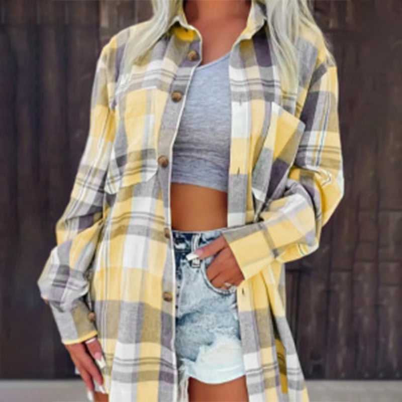 1 * Losvallend geruit damesoverhemd met lange mouwen