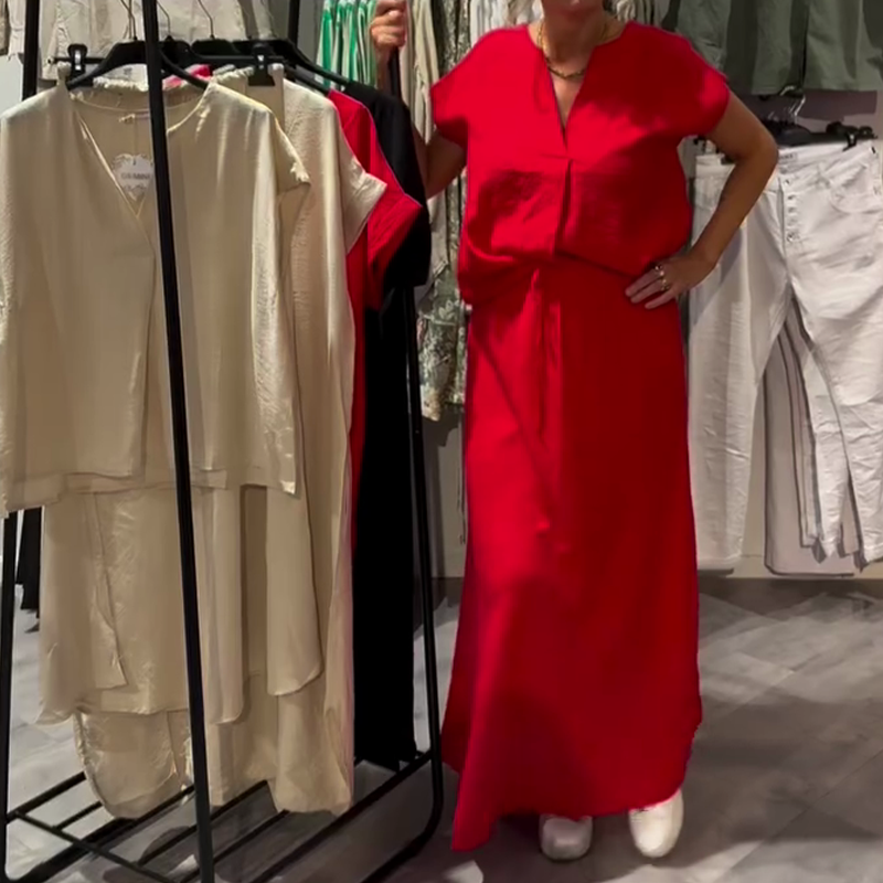 VAN DAG NAAR NACHT – Deze set gaat moeiteloos van werk naar weekend. Combineer met ballerina’s voor op kantoor of hakken voor een romantisch diner. Het minimalistische design is zowel casual als elegant te stylen.