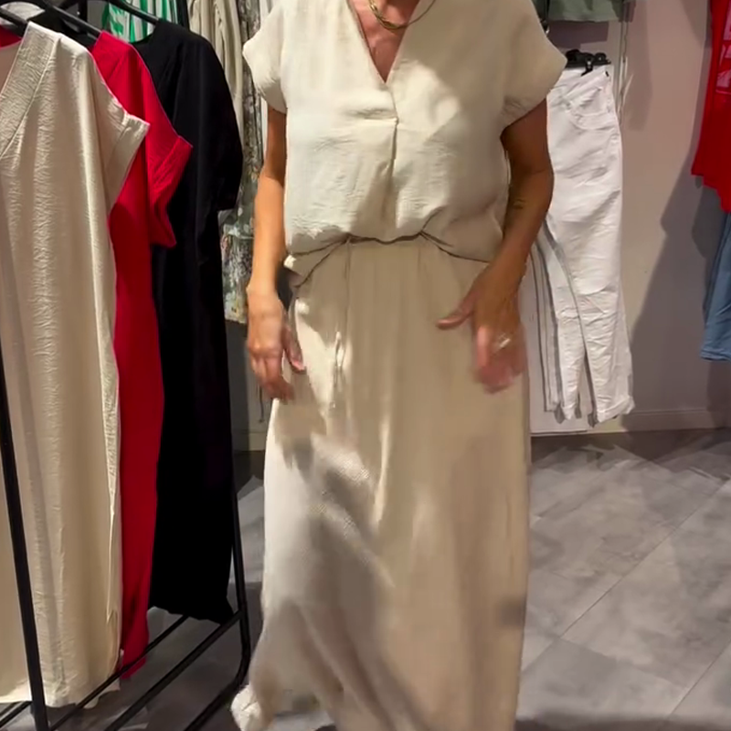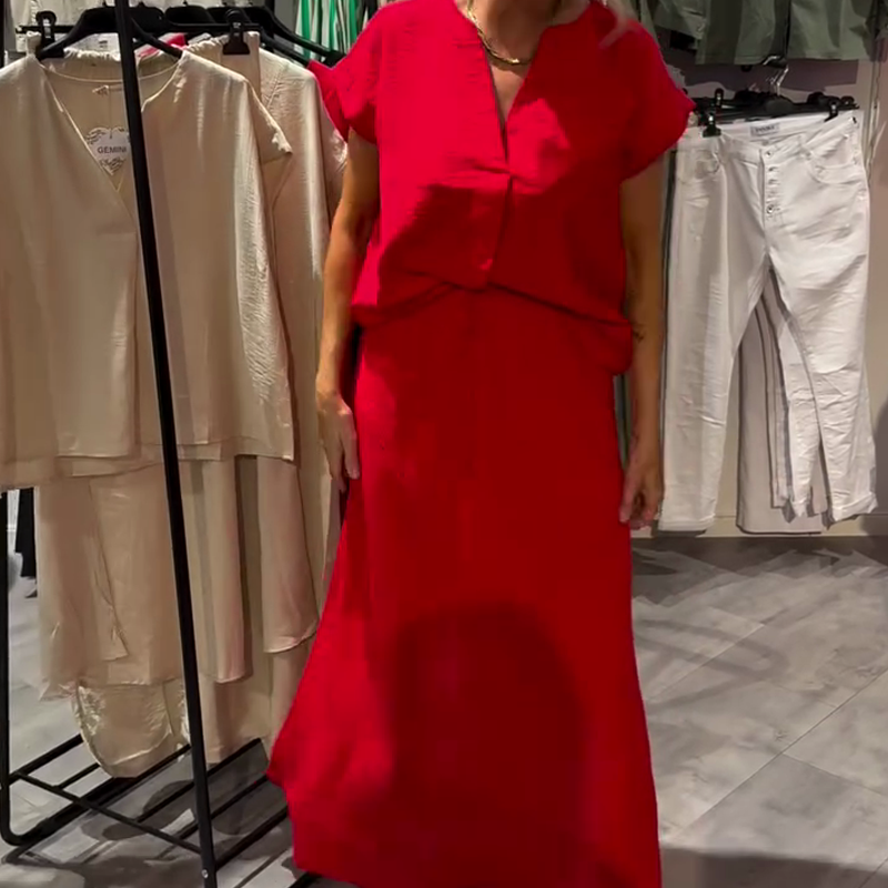STIJLVOLLE & MOEITELOZE COORDINATIE – Geen gedoe meer met outfit matching! Deze zomerset voor dames heeft een perfect op elkaar afgestemd design. De V-hals top en rok vullen elkaar aan voor een modieuze look in één handomdraai.